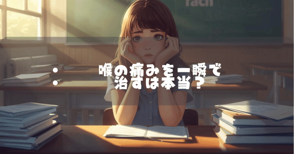 喉の痛みが突然きつくなると、「今日の会議で声が出ないかも」「飲み込むたびに刺すように痛い」と焦ってしまいます。そこで検索すると、知恵袋には「これで一発」「一瞬で治った」といった“即効ワザ”が並びますが、情報が多すぎて結局どれを信じればいいのか分からなくなりがちです。